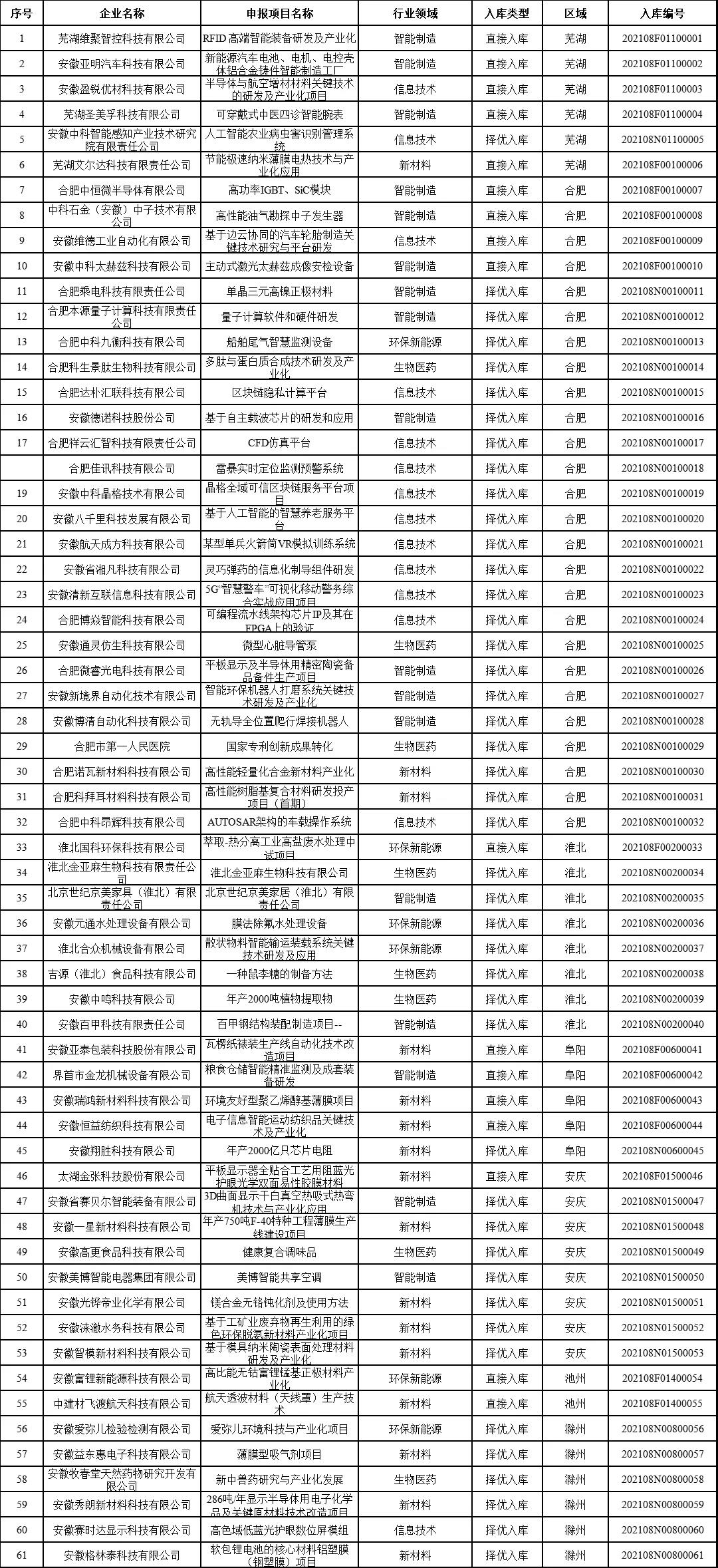 附加:2021年度安徽省科技成果轉(zhuǎn)化引導(dǎo)基金項(xiàng)目庫(kù)第一批入庫(kù)項(xiàng)目名單予以公布